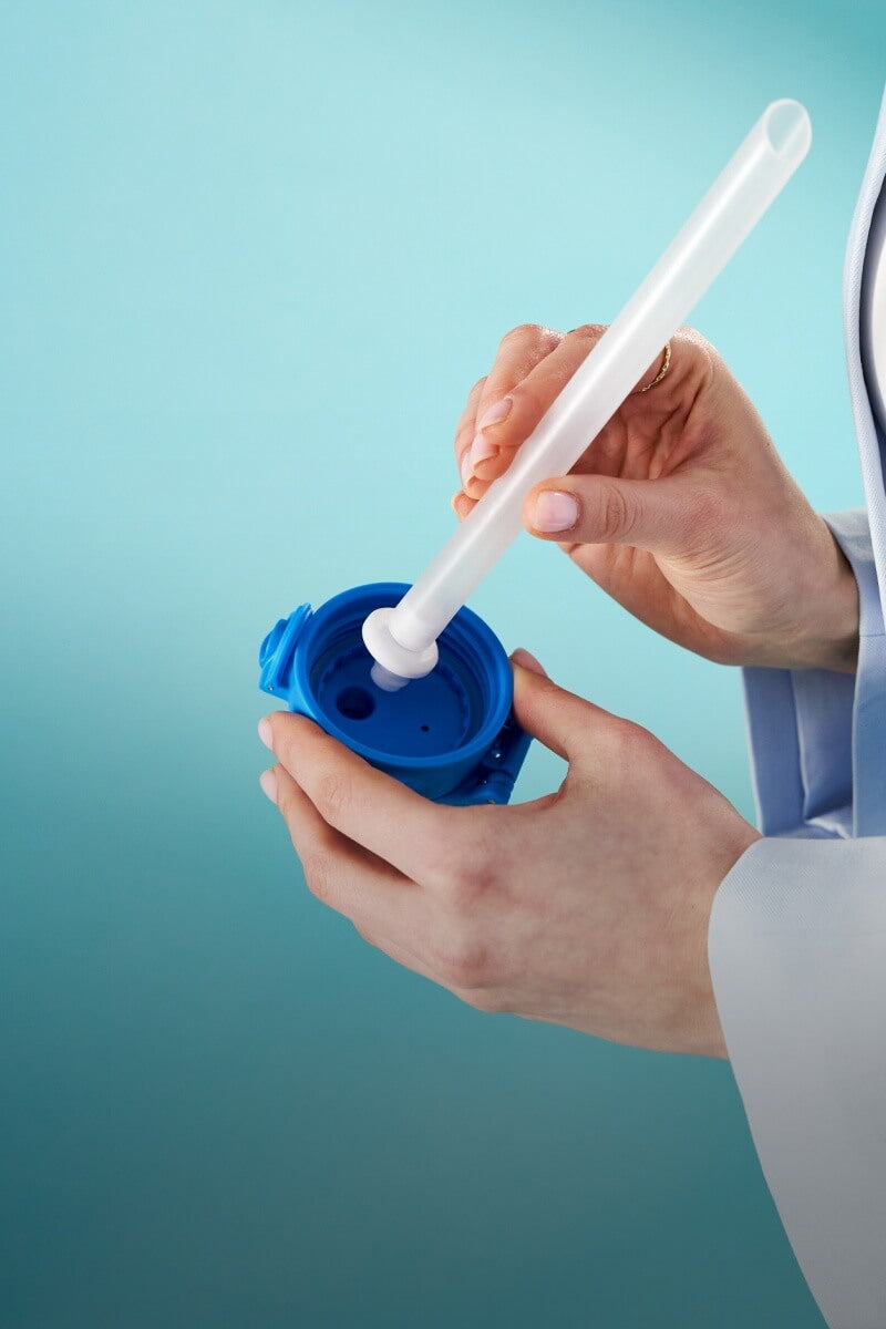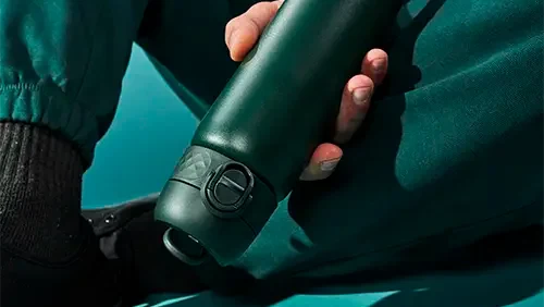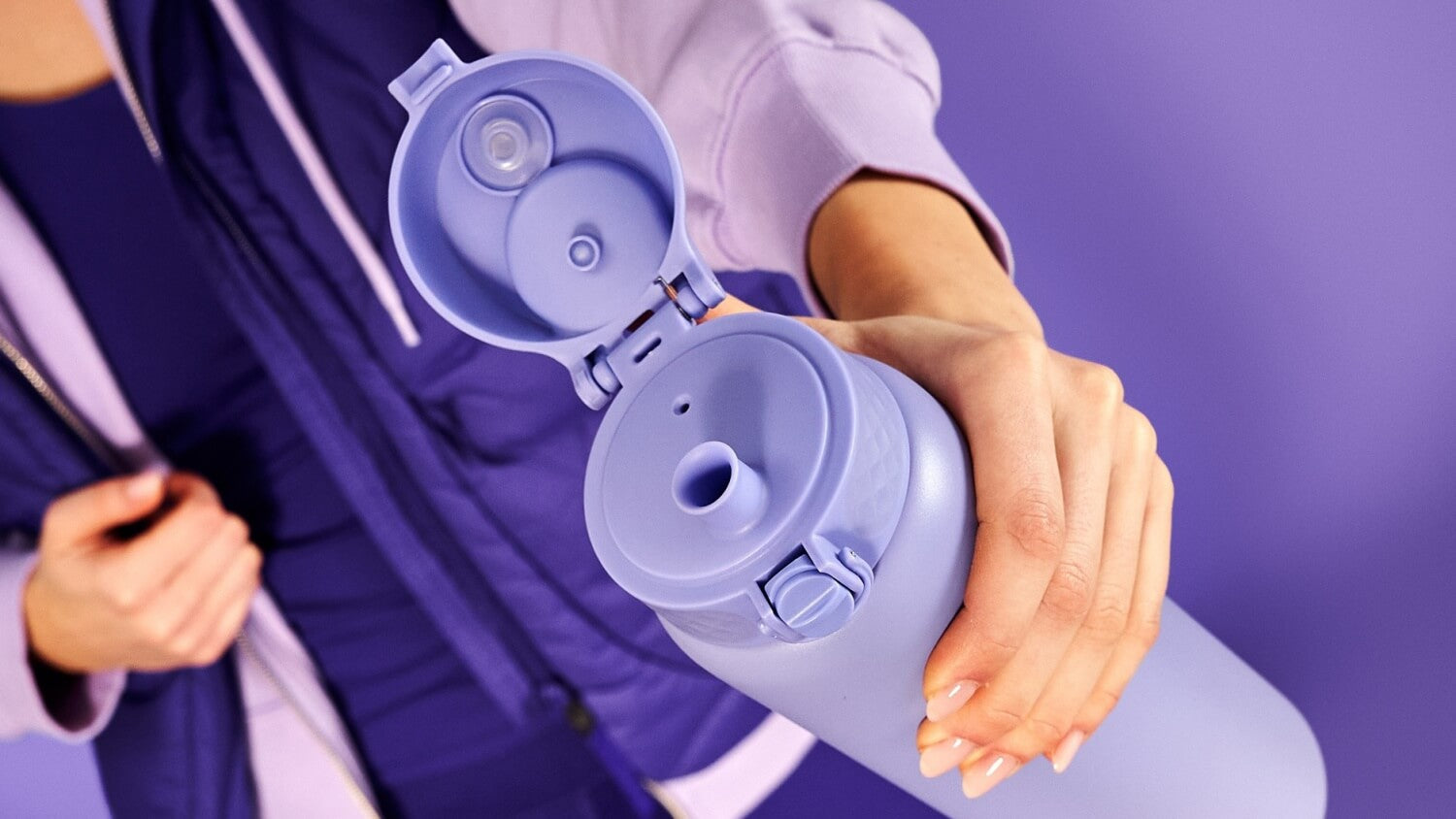 Einfach den Klappdeckel mit einem Finger drücken für sofortige, einhändige Hydration – und gleichzeitig bleibt der Ausguss hygienisch abgedeckt.