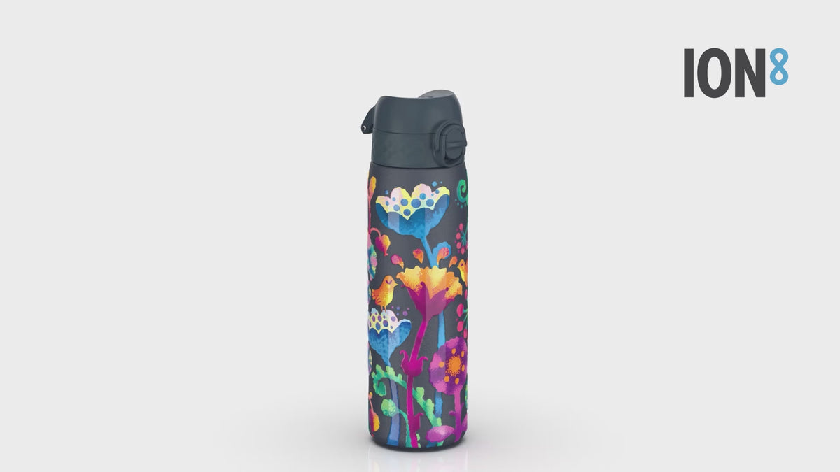 100 % auslaufsichere 500 ml / 17 oz vakuumisolierte doppelwandige Edelstahlflasche mit gleichmäßigem Durchfluss für kleckerfreies Trinken und hygienischem Klappdeckel für einhändige Nutzung unterwegs. Hält heiße Getränke heiß und kalte Getränke eiskalt und frisch – stundenlang.