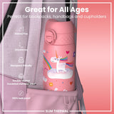 Die perfekte schlanke Wasserflasche für Schule, Auto, Büro oder den täglichen Gebrauch unterwegs. Mit der Breite einer Limonadendose passt sie ideal in alle Getränkehalter im Auto sowie in die Seitentaschen von Kinder- und Erwachsenenrucksäcken.