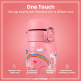 100 % auslaufsichere 500 ml / 17 oz vakuumisolierte, doppelwandige Edelstahl-Einhorn-Trinkflasche mit gleichmäßigem Trinkfluss für tropffreie Erfrischung und hygienischem Klappdeckel für Einhandbedienung unterwegs. Hält Heißgetränke heiß und Kaltgetränke eiskalt und frisch – stundenlang.