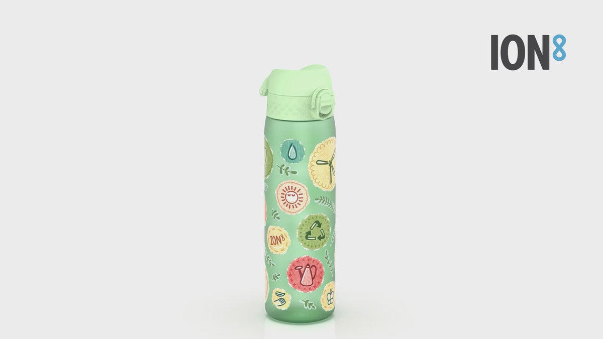 100 % auslaufsichere 600 ml / 20 oz BPA-freie Sportflasche mit gleichmäßigem Trinkfluss für tropffreies Trinken und einem hygienischen, vollständig aufklappbaren Deckel für die einhändige Nutzung unterwegs.