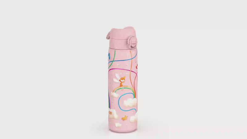 100 % auslaufsichere 600 ml / 20 oz Edelstahl-Wasserflasche mit gleichmäßigem Durchfluss für kleckerfreies Trinken und hygienischem Klappdeckel für einhändige Nutzung unterwegs.