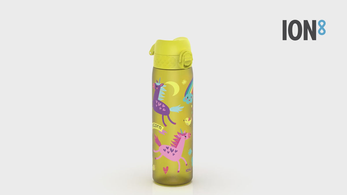 Auslaufsichere Kinder-Recyclon-Wasserflasche – Gelbe Einhörner