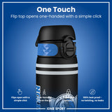 100 % auslaufsichere 500-ml-Sportflasche ohne BPA mit gleichmЧigem Trinkfluss fŸr kleckerfreie Hydrierung und einem hygienischen Flip-Top-Deckel fŸr einhŠndige Nutzung unterwegs.