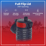 100 % auslaufsichere 600 ml / 20 oz Edelstahl-Trinkflasche mit gleichmäßigem Trinkfluss für tropffreie Erfrischung und hygienischem vollständig umklappbarem Deckel für Einhandbedienung unterwegs.