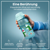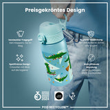 100 % auslaufsichere 400 ml / 13 oz BPA-freie Sportflasche mit gleichmäßigem Trinkfluss für tropffreies Trinken und einem hygienischen, vollständig aufklappbaren Deckel für die einhändige Nutzung unterwegs.
