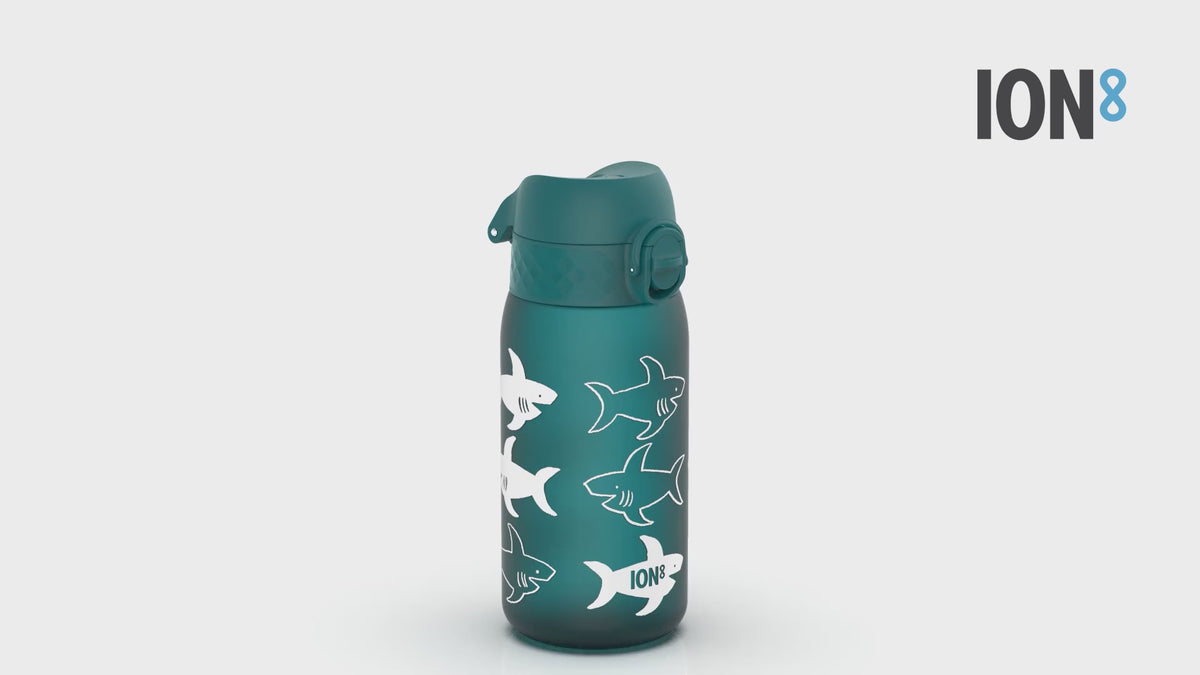100 % auslaufsichere 400 ml / 13 oz Sportwasserflasche aus BPA-freiem Material mit gleichmäßigem Trinkfluss für tropffreies Trinken und einem hygienischen, vollständig aufklappbaren Deckel für einhändige Nutzung unterwegs.