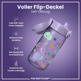 Auslaufsichere Kinder-Recyclon-Wasserflasche – Lila Einhörner