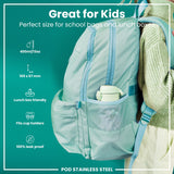 Die perfekte Alternative zu Einwegbechern. Klein genug als Kindertrinkflasche für Brotdosen oder kleinere Taschen in der Stadt. Mit der Breite einer Limonadendose passt sie perfekt in alle Getränkehalter im Auto und in die Seitentaschen von Rucksäcken.