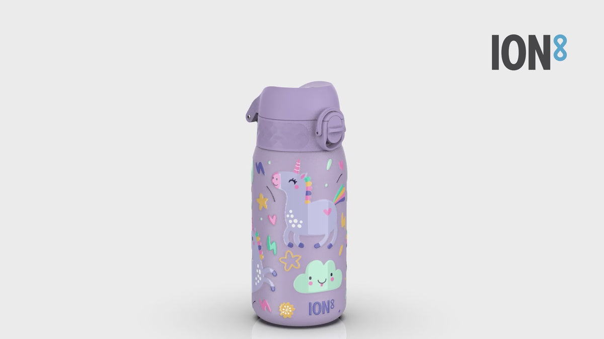 100 % auslaufsichere 400 ml / 13 oz Edelstahl-Wasserflasche mit Einhornmotiv, gleichmäßigem Trinkfluss für kleckerfreies Trinken und hygienischem Flip-Top-Deckel für einhändige Nutzung unterwegs.