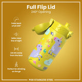 100 % auslaufsichere 400 ml / 13 oz Edelstahl-Wasserflasche in Gelb mit gleichmäßigem Trinkfluss für kleckerfreies Trinken und hygienischem Flip-Top-Deckel für einhändige Nutzung unterwegs.