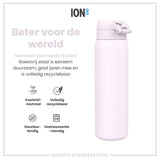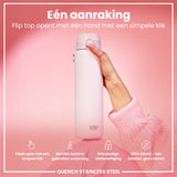 Hergestellt aus Edelstahl – äußerst robust, langlebig und vollständig recycelbar. Diese nachfüllbare und wiederverwendbare Flasche in Rosa ist lebensmittelecht, geruchsresistent, leicht per Hand zu reinigen und hält Getränke frisch und geschmackvoll.