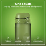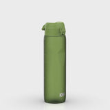 100 % auslaufsichere 1100 ml / 36 oz BPA-freie Sportwasserflasche in Khakigrün mit gleichmäßigem Trinkfluss für tropffreie Hydration und hygienischem Flip-Top-Deckel für Einhandbedienung unterwegs.