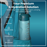 Die ideale große Trinkflasche für Fitness, Sportstudio, Camping und Outdoor-Aktivitäten. Mit integriertem Handgriff, passend für breitere oder verstellbare Becherhalter und äußere Mesh-Taschen von Rucksäcken.