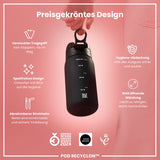 Hergestellt aus Recyclon™, einem transparenten, CO₂-neutralen Kunststoff, der teilweise aus Pflanzen besteht. Wiederverwenden und verantwortungsvoll nachfüllen. Diese Trinkflasche ist lebensmittelecht, geruchsresistent, leicht zu reinigen und bewahrt Getränke frisch und geschmackvoll.