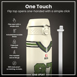OneTouch-Flaschen verfügen über ein Luftventil für einen gleichmäßigen, tropffreien Durchfluss. Der seitliche Ausguss ermöglicht Trinken mit minimaler Neigung für optimale Flüssigkeitsaufnahme. Bei zu starker Neigung kann Wasser aus dem Ventil austreten.