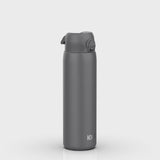 Auslaufsichere graue 1-Liter-Wasserflasche aus Edelstahl
