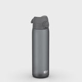 100 % auslaufsichere 600 ml / 20 oz BPA-freie graue Wasserflasche mit Trinkhalm, gleichmäßigem Trinkfluss für tropffreies Trinken und einem hygienischen, vollständig aufklappbaren Deckel für die einhändige Nutzung unterwegs.