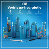 Die perfekte schlanke blaue Trinkflasche für Schule, Auto, Büro oder den täglichen Gebrauch unterwegs. Mit der Breite einer Limonadendose passt sie perfekt in alle Auto-Getränkehalter und Außentaschen von Kinder- und Erwachsenenrucksäcken.