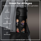 Kompakt genug als Kinderflasche für Brotdosen oder kleinere Taschen in der Stadt. Mit dem Durchmesser einer Limonadendose passt sie perfekt in alle Getränkehalter im Auto und in die Seitentaschen von Rucksäcken.